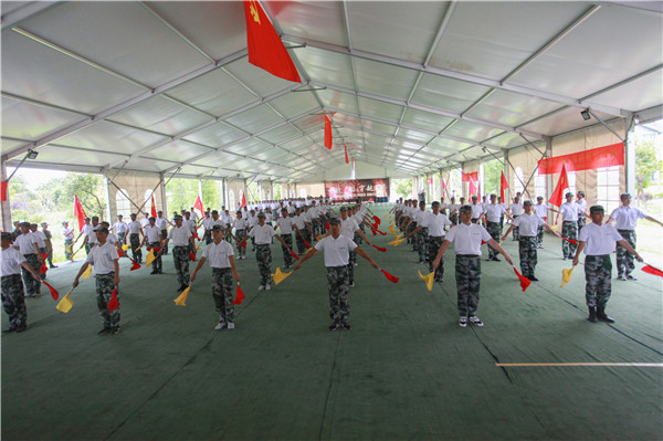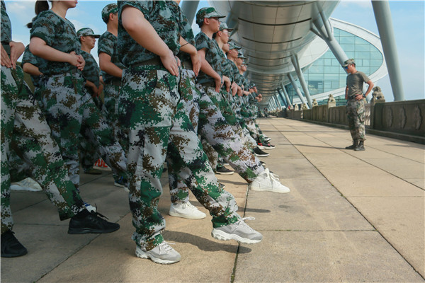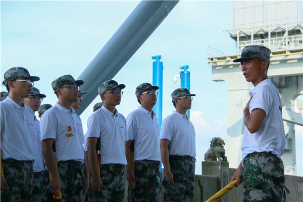 為期六天的軍訓中,學(xué)員被分為6個(gè)軍團,由一位總教官和六位軍團教官主導,全流程開(kāi)展停止間轉法,齊步、跑步、正步三大步伐,擒敵拳,海軍旗語(yǔ),匕首操等一系列軍事技能訓練。